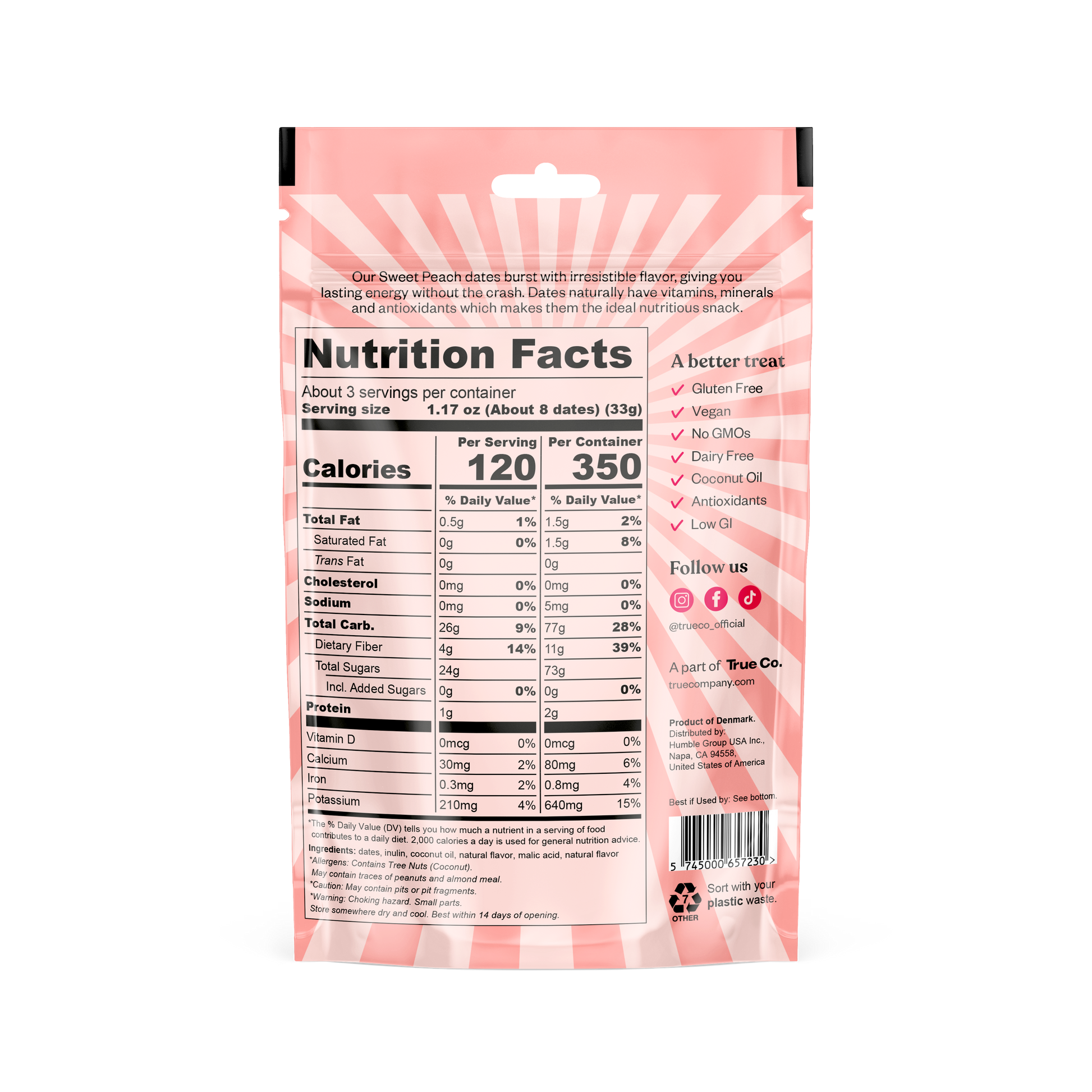 Indulge in the delightful fusion of dates and the essence of ripe peaches with our Sweet Peach True Dates™. It’s a sweet escape – a harmonious balance of flavors that captivates your taste buds with every bite.